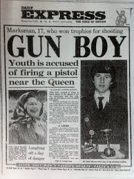 1981 At the Trooping the Colour ceremony on Horse Guards Parade, Marcus Sarjeant fires six blank shots at Queen Elizabeth on her 19yo horse, Burmese. Quickly wrestled to the ground, Sarjeant said, " I wanted to be famous, I want to be a somebody!" Ironically nothing more has ever been heard of him, as after spending three years in prison, he changed his name and began a new life.
